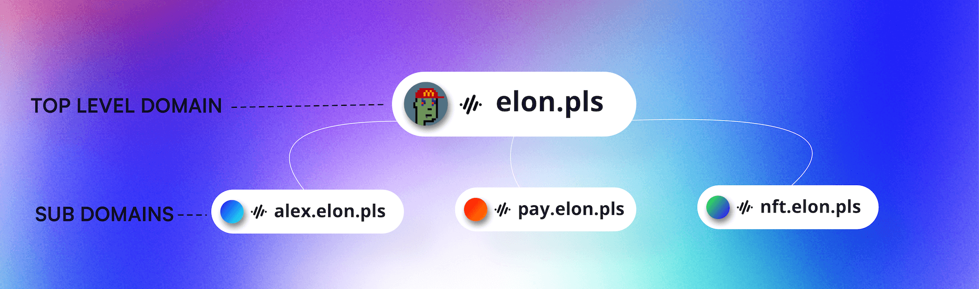Because of the hierarchical nature of PNS, anyone who owns a domain at any level may configure subdomains - for themselves or others - as desired. For instance, if Alex owns 'alex.pls' he can create 'pay.alex.pls' and configure it as he wishes.